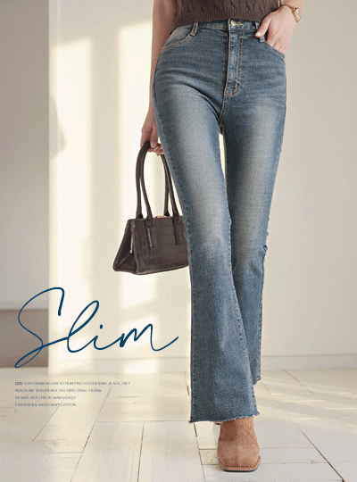 Vintage Washing Slim Long Boot-Cut Denim Pants(napping lining)