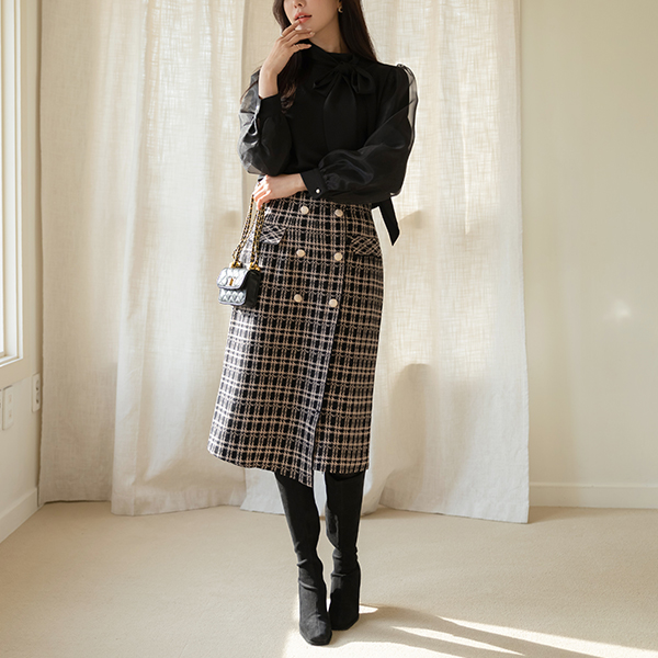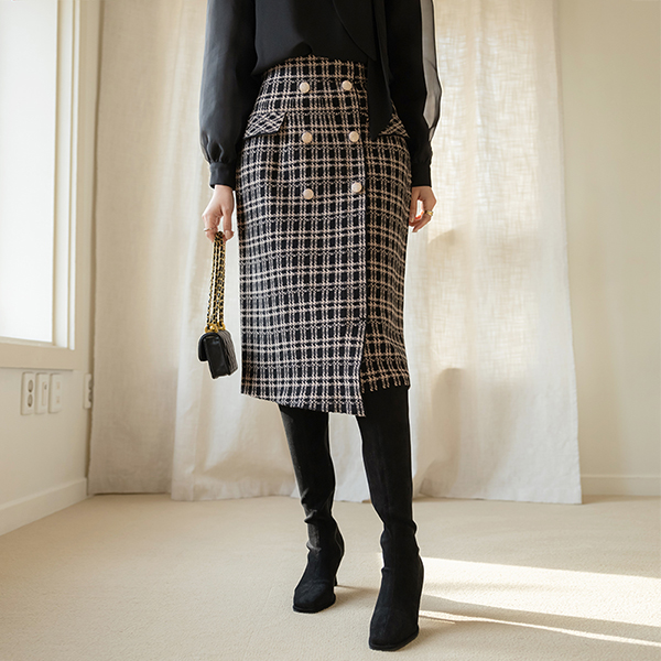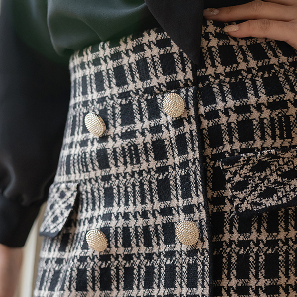 Luxury Gold Button Knit Tension Skirt