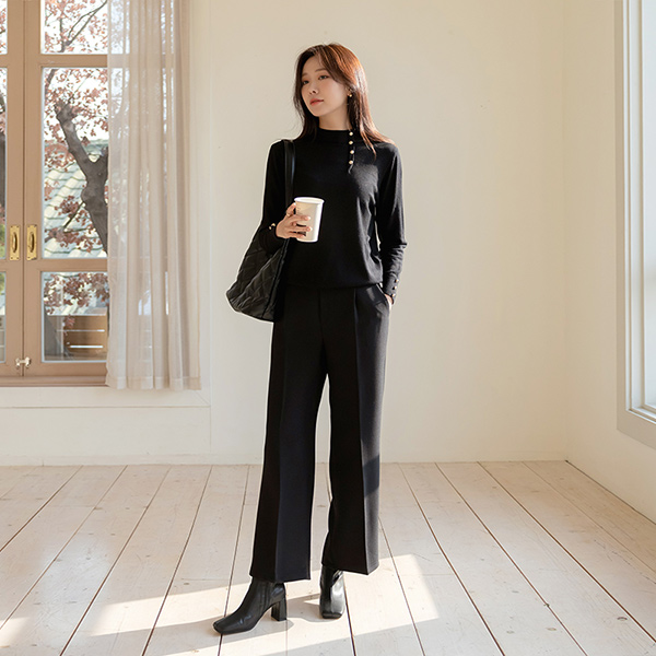 Lily Gold Button Soft Touch Half-Highneck Knit