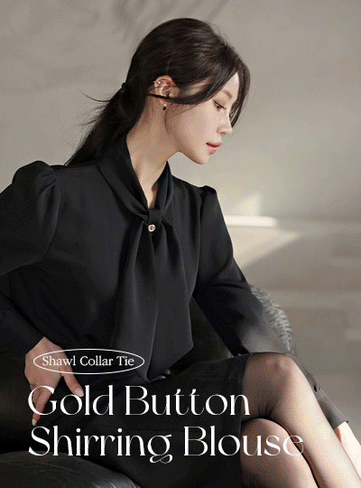 Shawl Collar Tie Gold Button Shirring Blouse Ⅲ