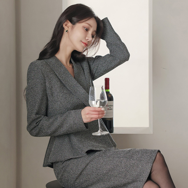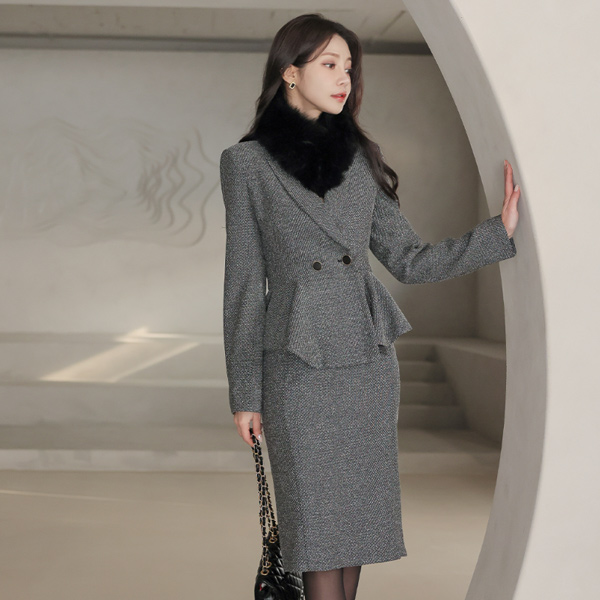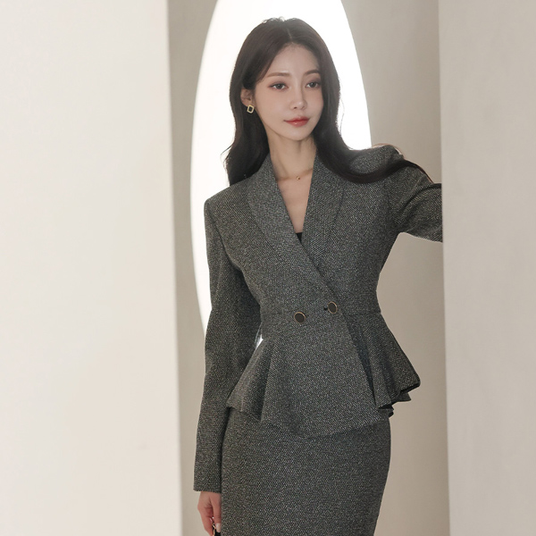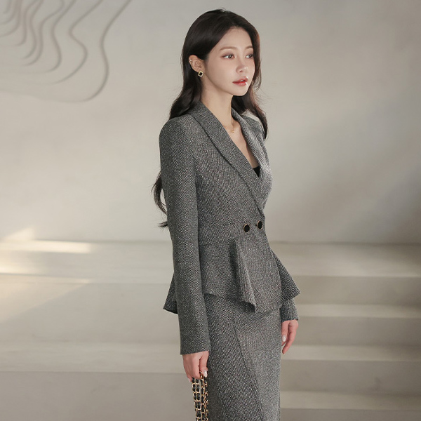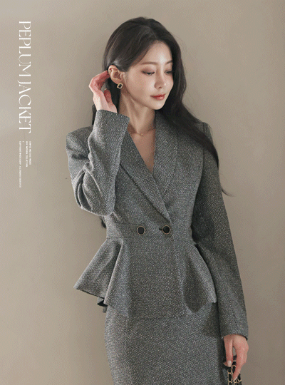 Official Thread-mix Shawl Collar Double-button Peplum Jacket