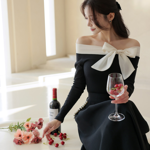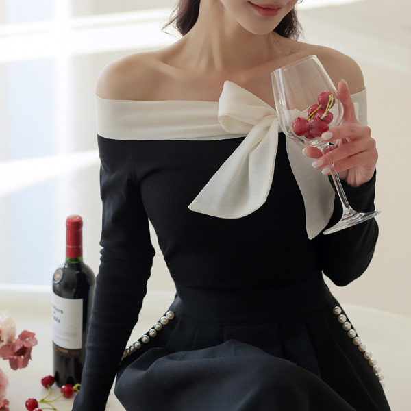Tulle Color Combination Ribbon Open Shoulder T-shirt