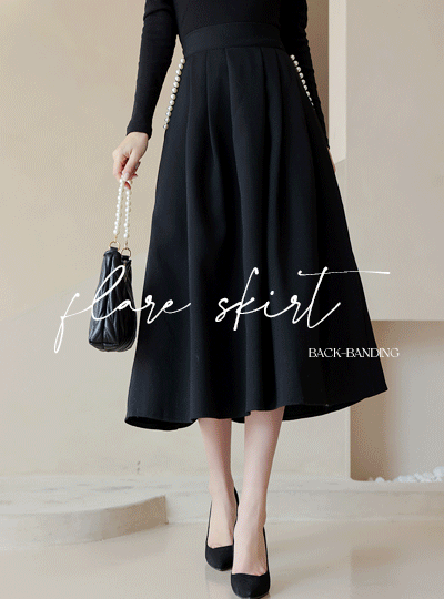 Pearl Diagonal Pocket Point Back Banding Flared Skirt