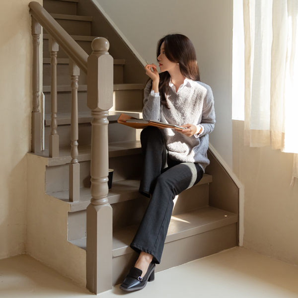 [the Fit Up] Easy! High qulity Greige Boot-Cut Fleece Denim Pants