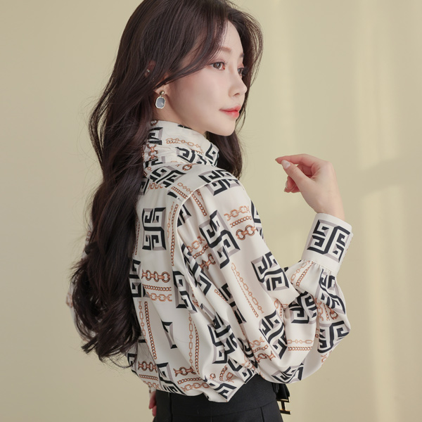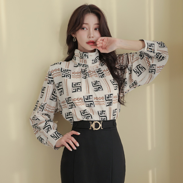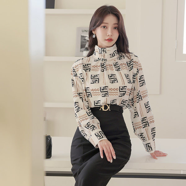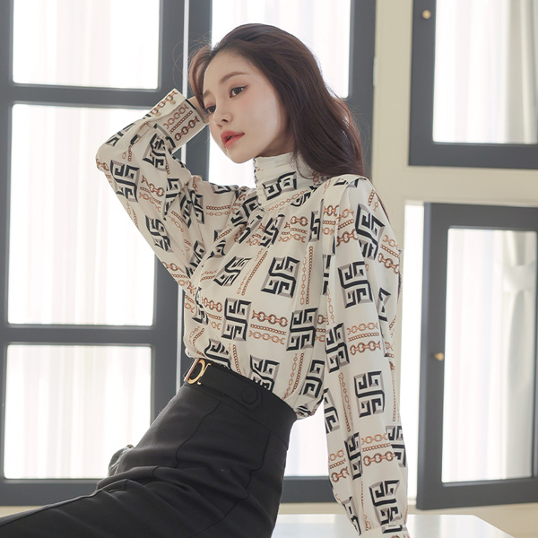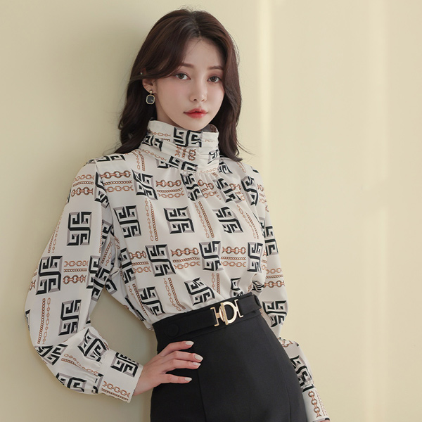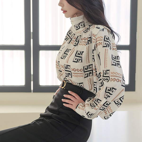 Chain Color Combination High-Neck Blouse