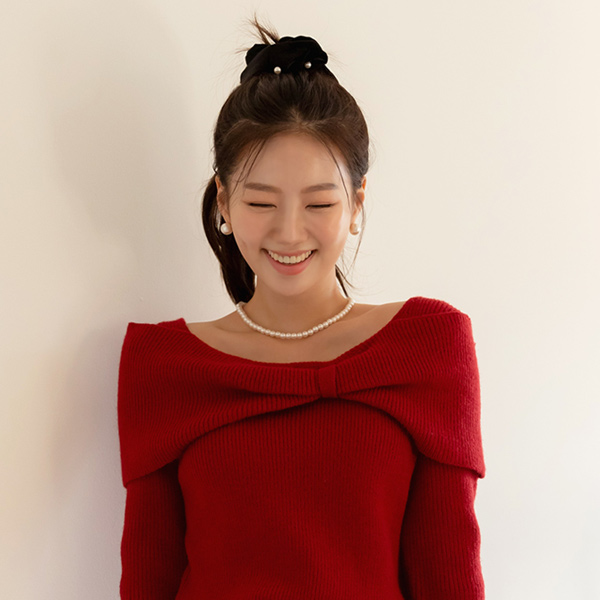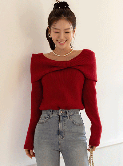 Ribbon Off Shoulder Style Point Wool Knit