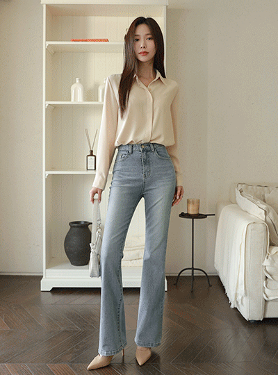 Long-legged Fit Washing Boot-Cut Denim Pants