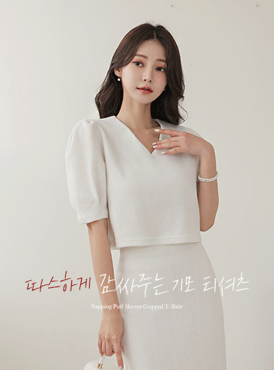fluffy Fleece Puff Sleeves Crop T-shirt