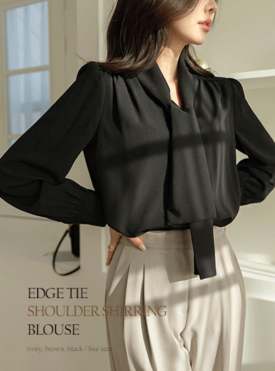 Edge Tie Shoulder Shirring Blouse
