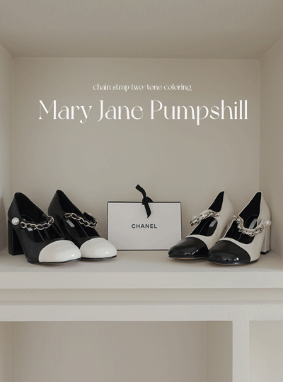 Chain Strap Two Tone Color Combination Mary-Jane Pumps Heels