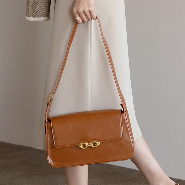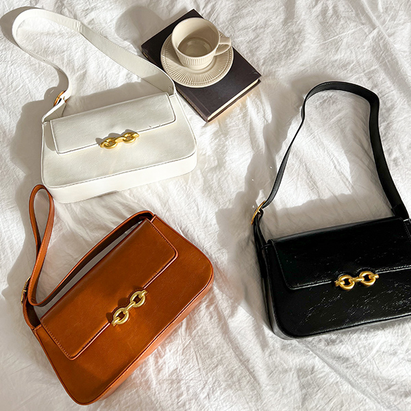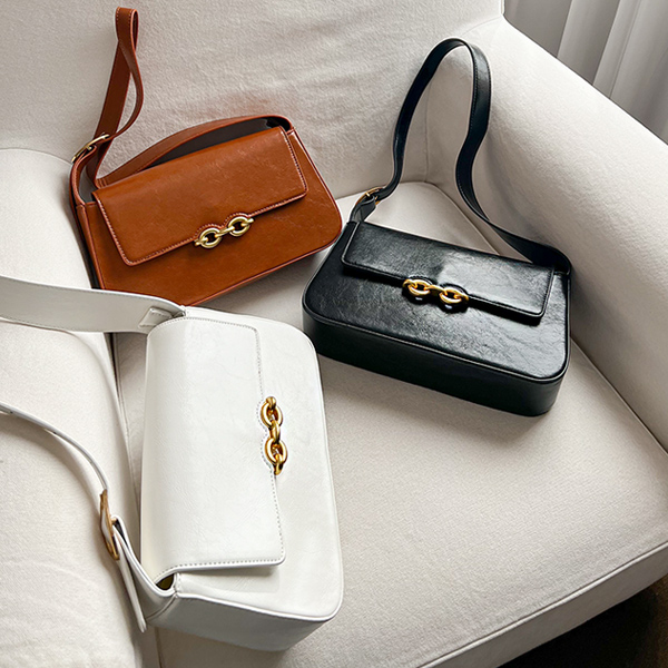 Modern Glossy Gold Buckle Point Shoulder Bag