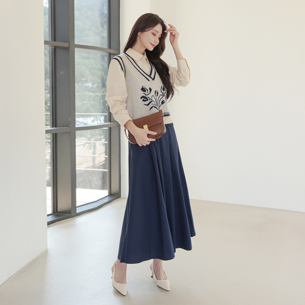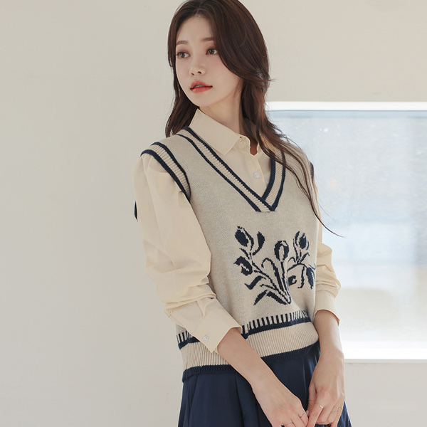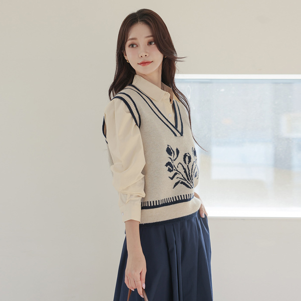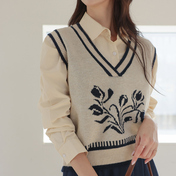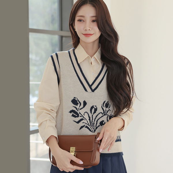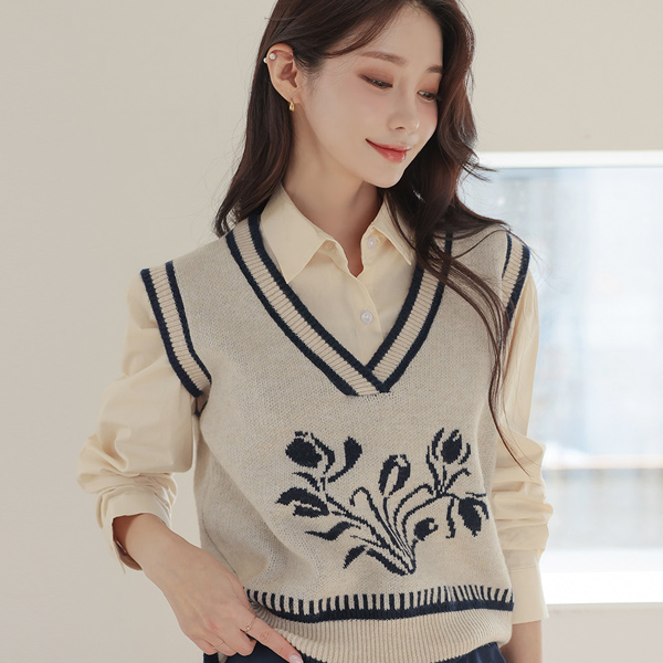 Flower Color Combination Point Knit Vest
