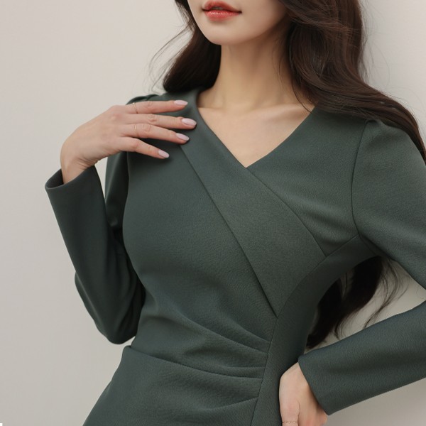Diagonal ODE Glam Wrap Shirring Span Dress(Long-sleeve)