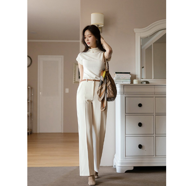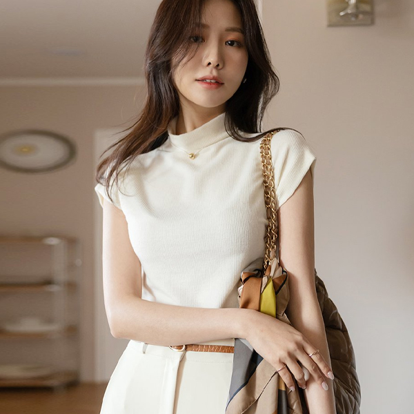 quality Corduroy Half-Neck Cap-Sleeves T-shirt