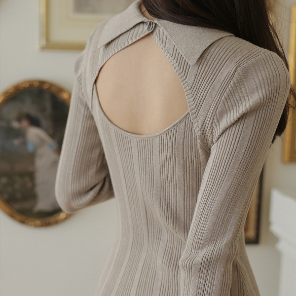 Collar Corduroy Long Knit Dress