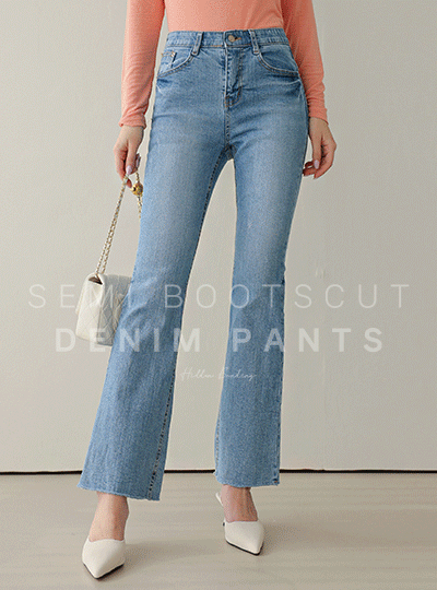 Hidden Banding Easy Cutting Semi- Boot-Cut Denim-Pants