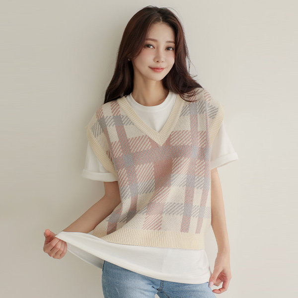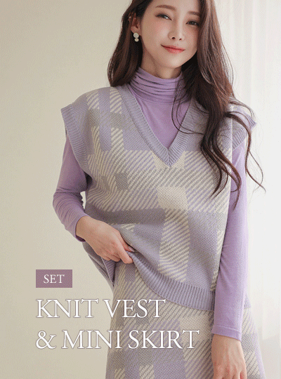 Check Knit Vest&Mini Skirt SET