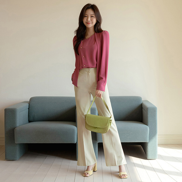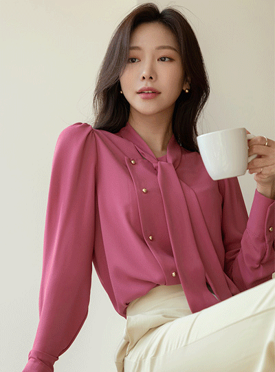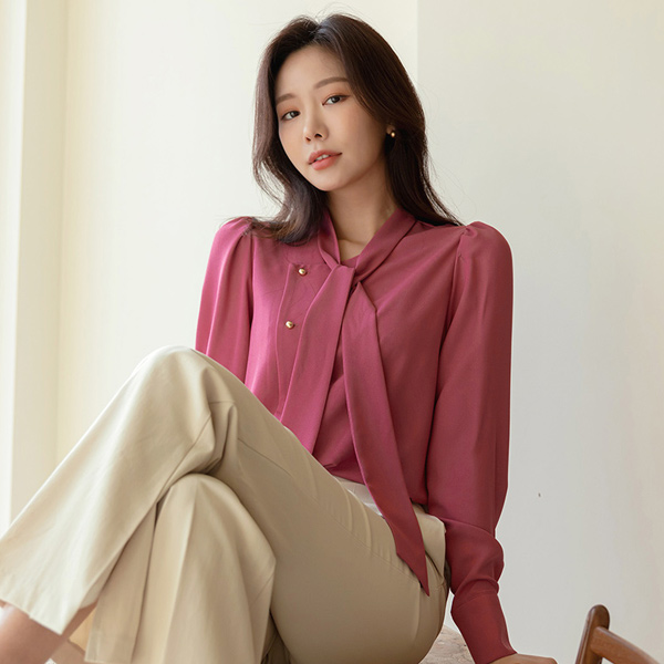 Spring Point Color Tie Neck Blouse
