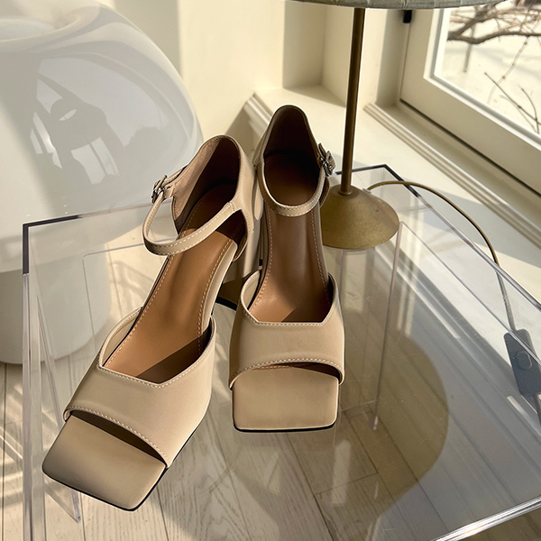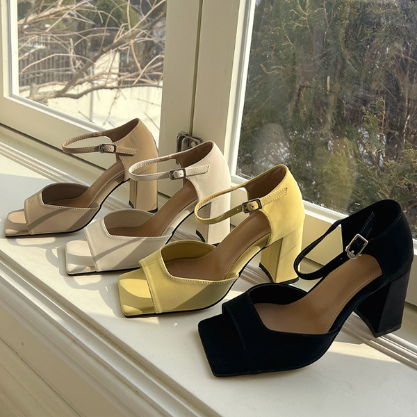 Square Toe Bold Heel Strap Heels