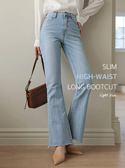 Light-Blue Slim High-Waist Long Boot-Cut Denim Pants