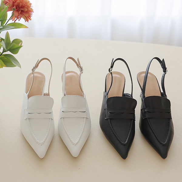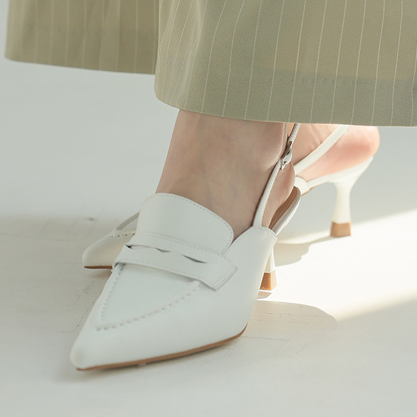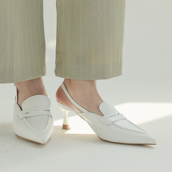 Chic Mood Slim front Real Cowhide Backless Loafer Heels