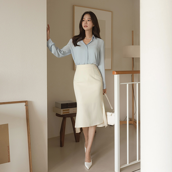 Flowy slender Mood Hidden Button Basic Blouse