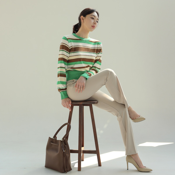 Tight Span Hidden Banding Semi- Boot-Cut Slacks(spring)