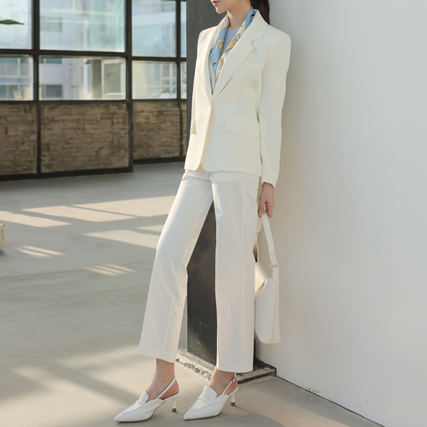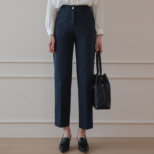 Gold Button Cotton Span Straight Slacks
