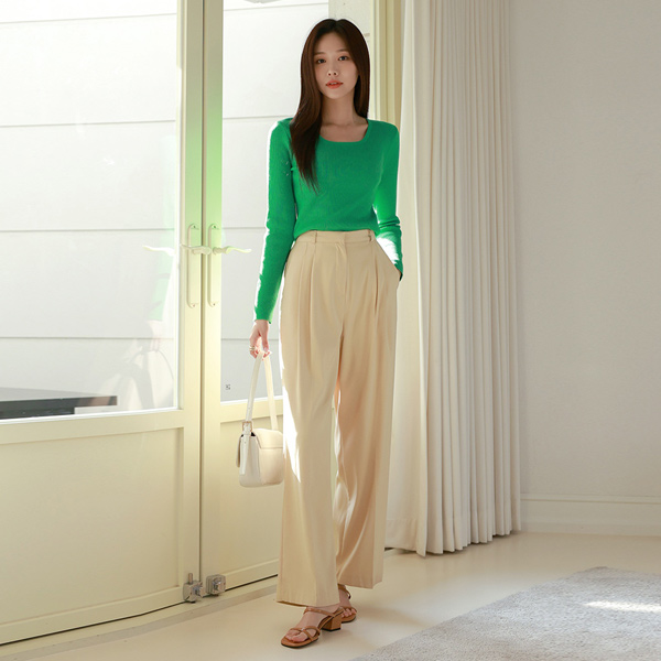 Color Point Square Neck Daily Knit