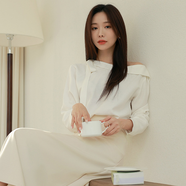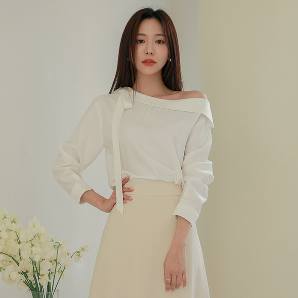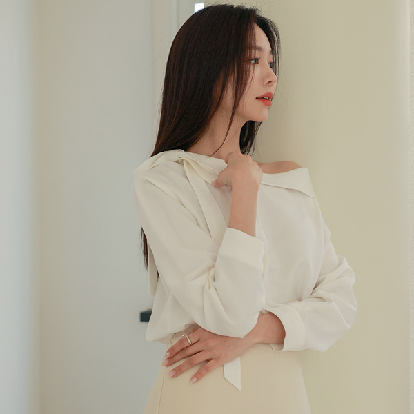 One Shoulder Open Ribbon Tie Cropped Sleeves Blouse