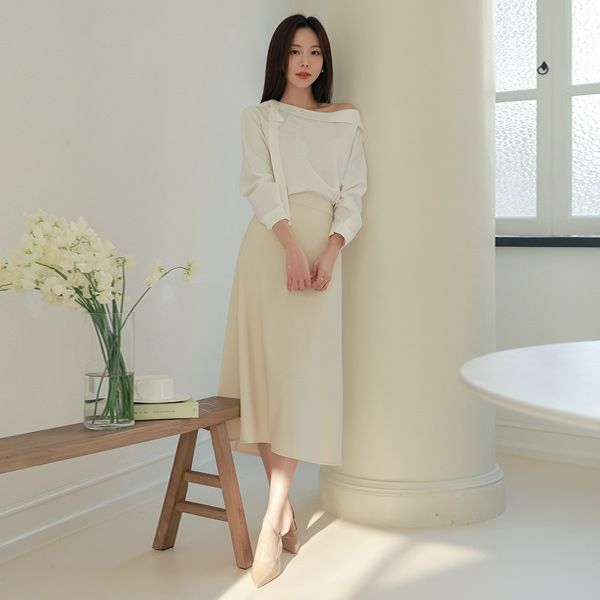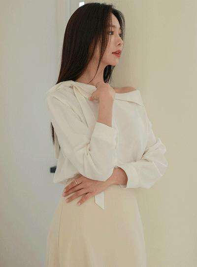 One Shoulder Open Ribbon Tie Cropped Sleeves Blouse