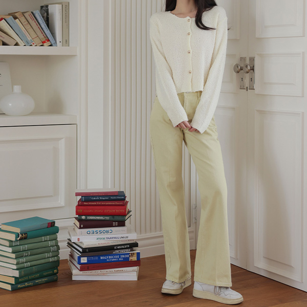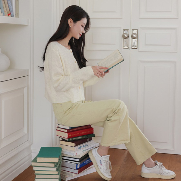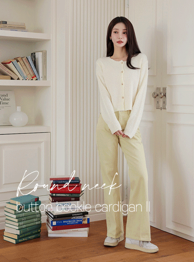 Raund neck Color Combination Button Bouclé Cardigan Ⅱ