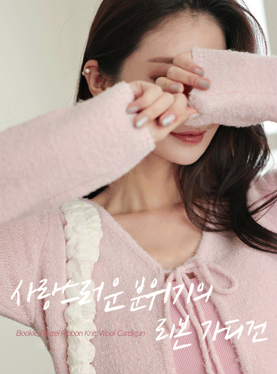 Bouclé Pastel Ribbon Knit Wool Cardigan