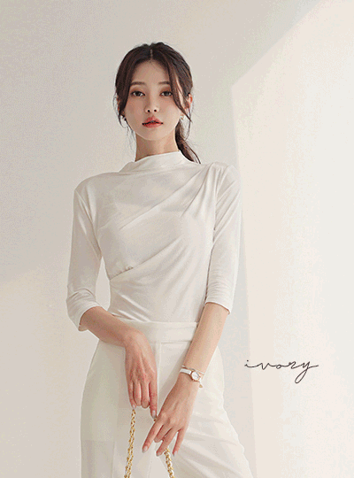 a half-turtleneck line Drape Shirring Tension T-shirt