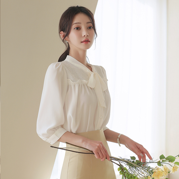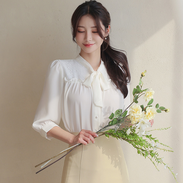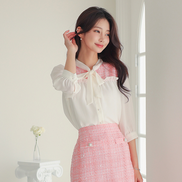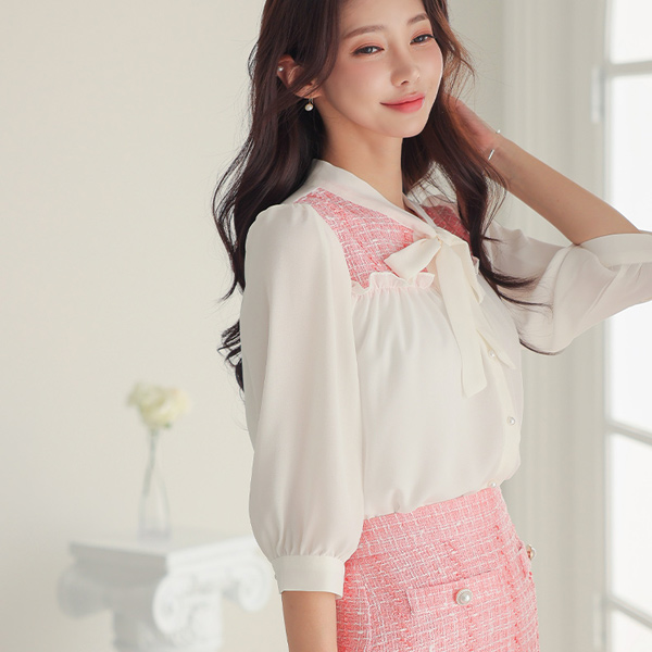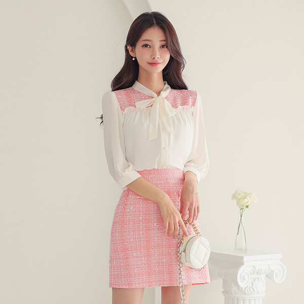 Barbie Tweed Color Combination Frill Ribbon Blouse