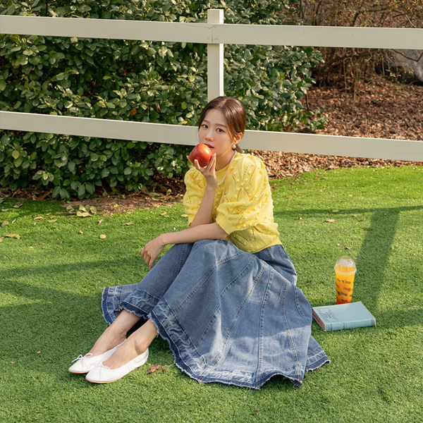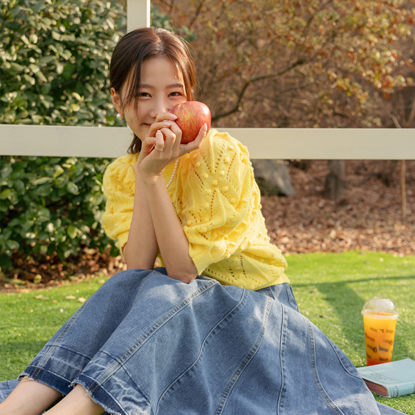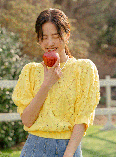 Lovely Puff Shoulder Color Knit