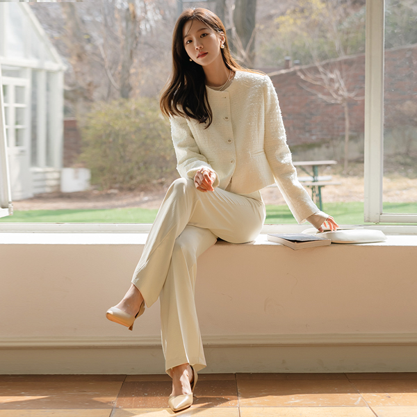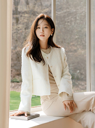 sugar Color Modern Tweed Jacket