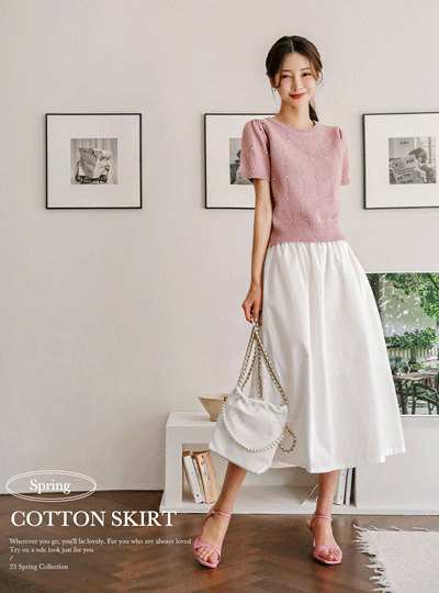 Waist Shirring Back Banding 30수 Cotton Skirt