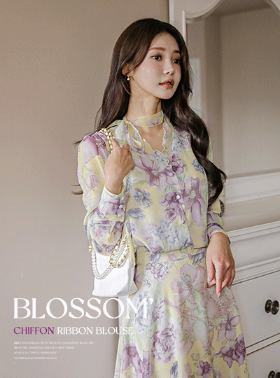 Blossom Chiffon Wave Ribbon Blouse