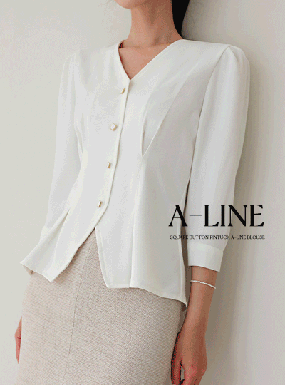 Square Button Pintuck A-line Blouse