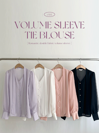 Romantic Double Fabric Volume Sleeves Tie Blouse