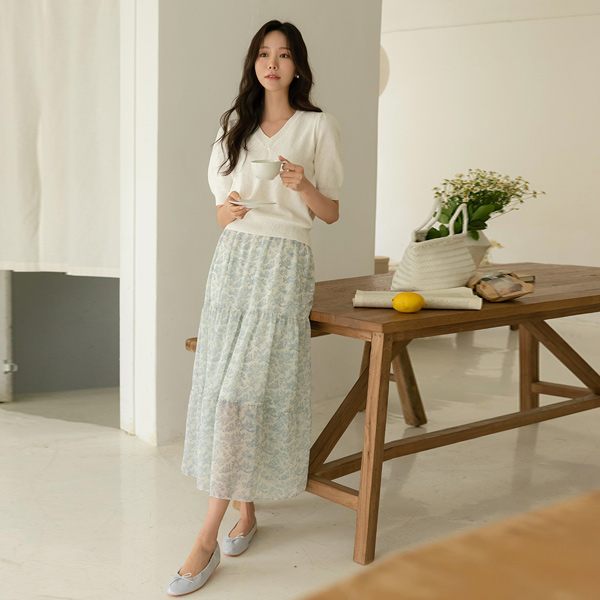 Lovely Color Puff V-neck Cotton Knit