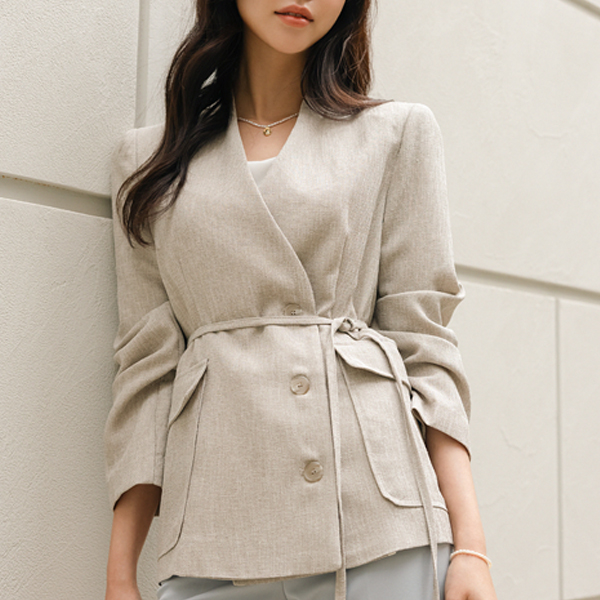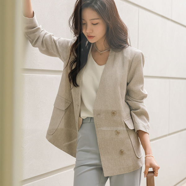 Linen quality Modern Style No-collar Jacket