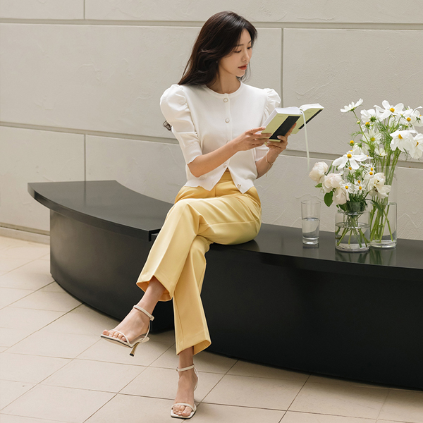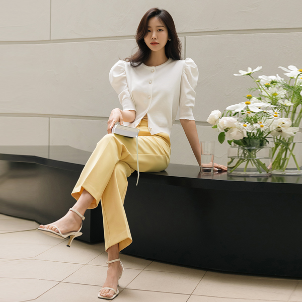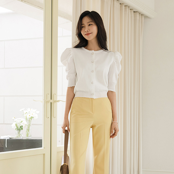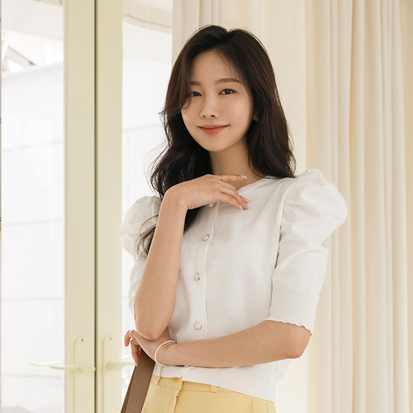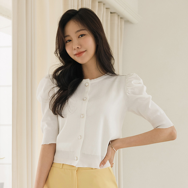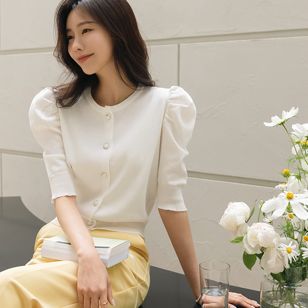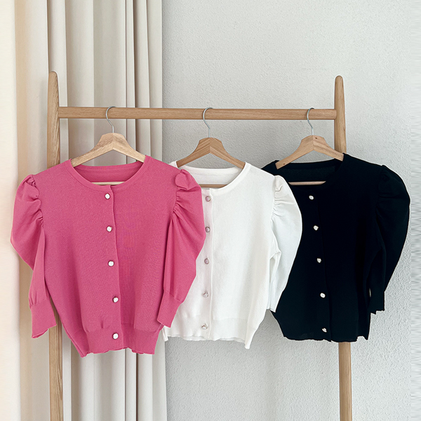 Romantic Puff Sleeves Jewel Button Knit Cardigan