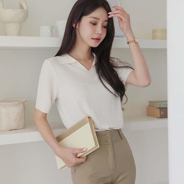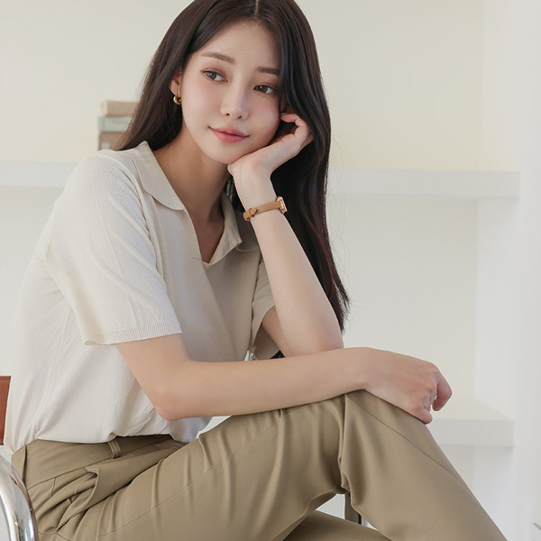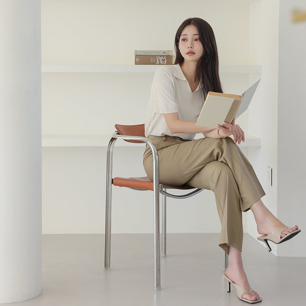 Wrinkle Free Two button High-Waist Semi- Boot-Cut Slacks