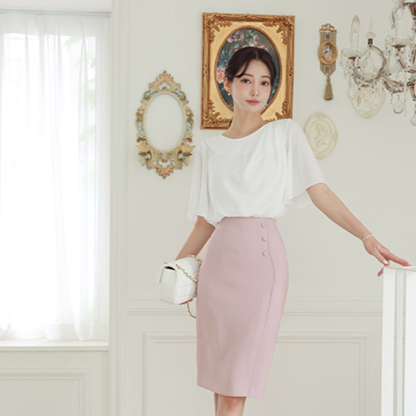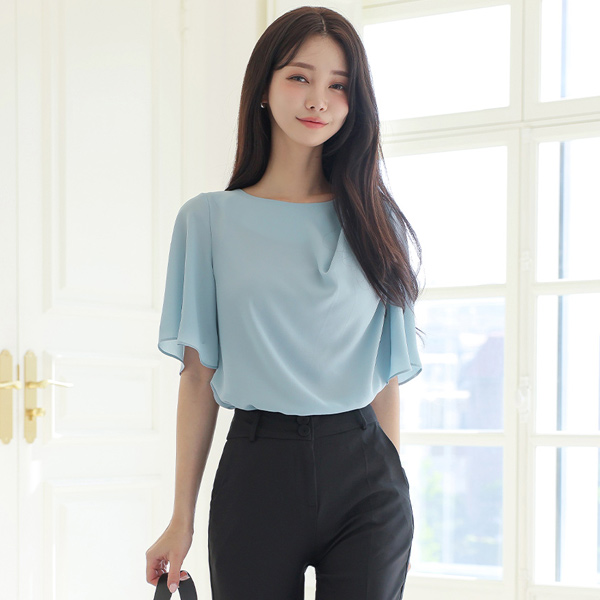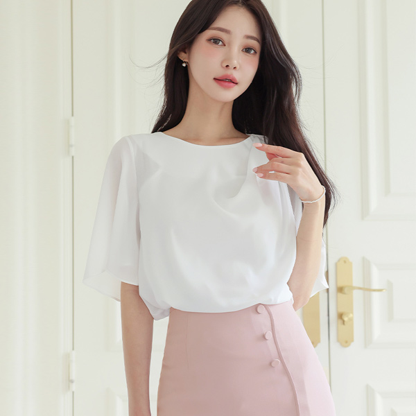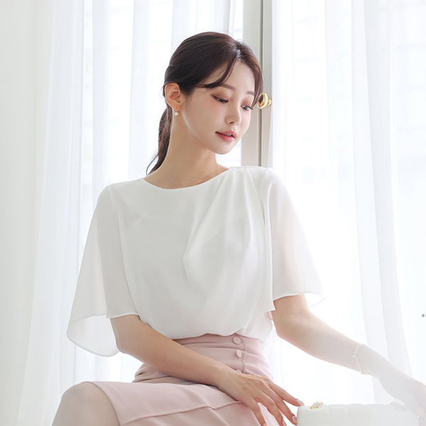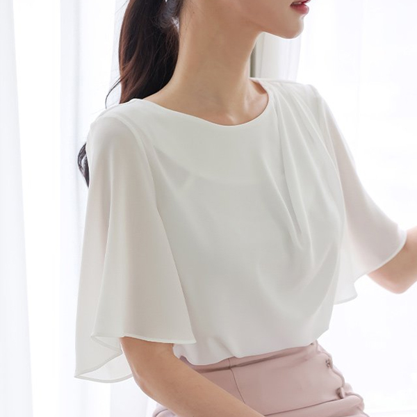 Unbalance Draping Bloom Wing Sleeves Blouse