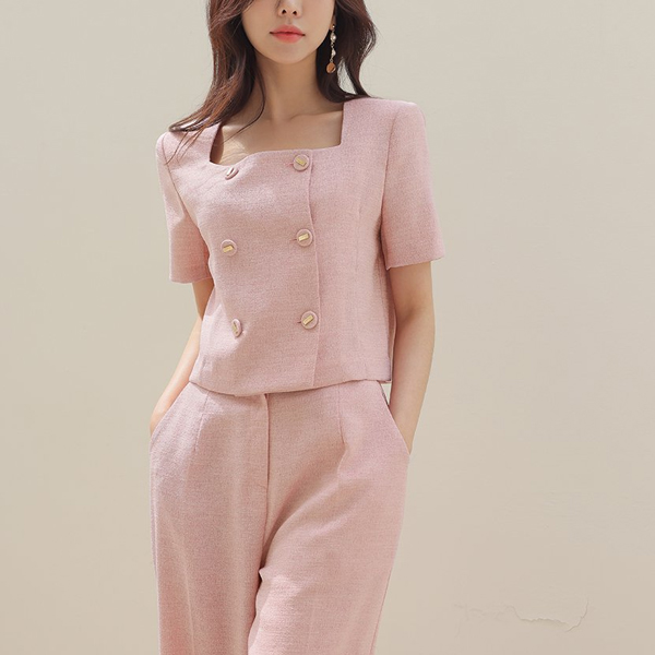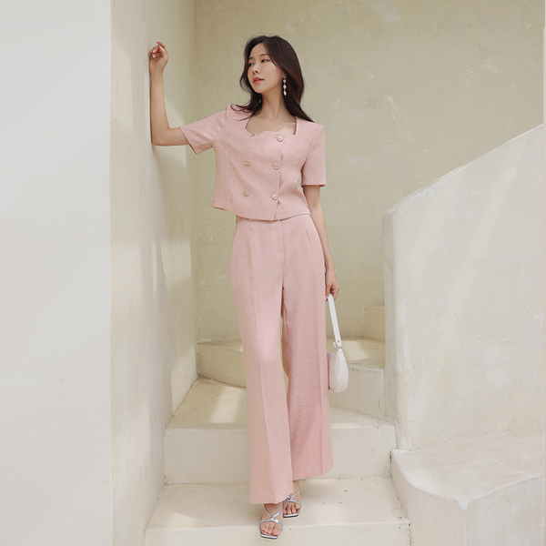 Elegance Summer Tweed wide fit Back Banding Slacks