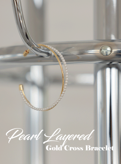Pearl layered Gold Cross bracelet