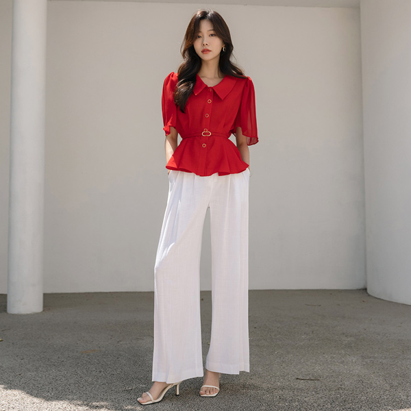 Chiffon Wing Sleeves Peplum Blouse (BeltSET)