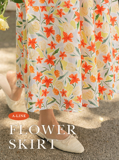Color Flower Banding A-line Skirt